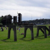 Perhaps the most unique of Seattle’s outdoor recreational facilities, Gas Works Park at the north end of Lake Union began its life as a coal gasification plant in 1906, and after closing down in 1956 it was converted in 1975 to its present use.