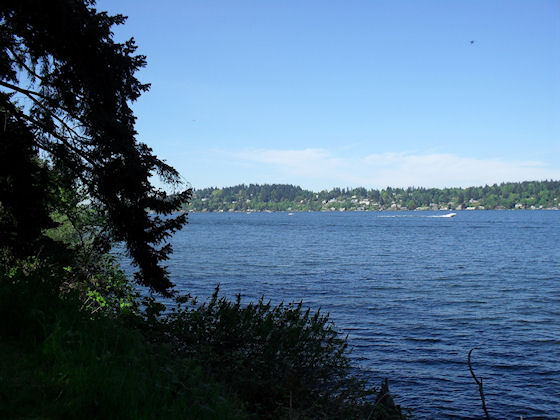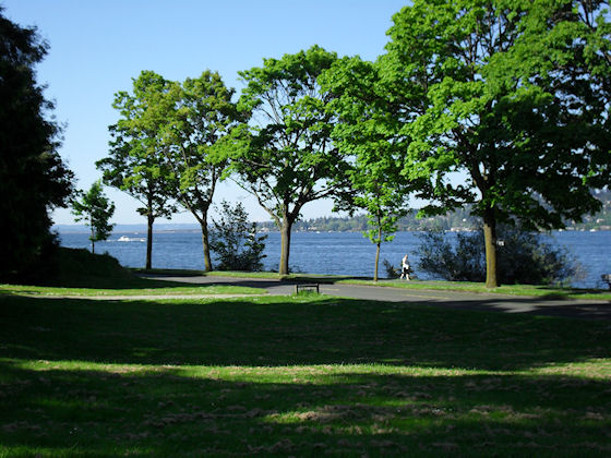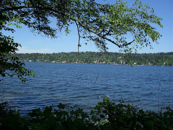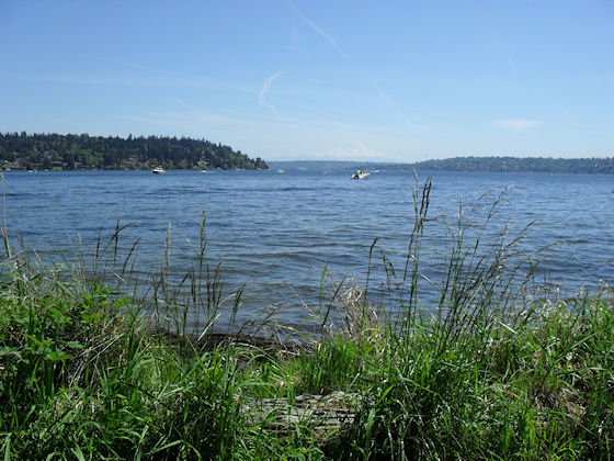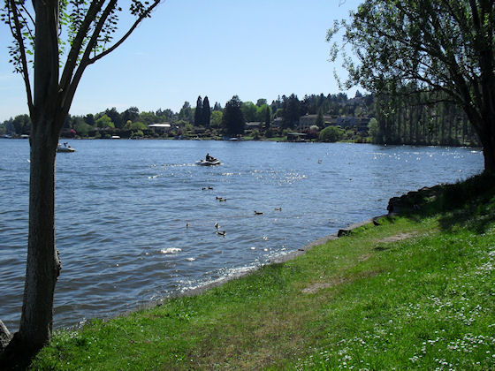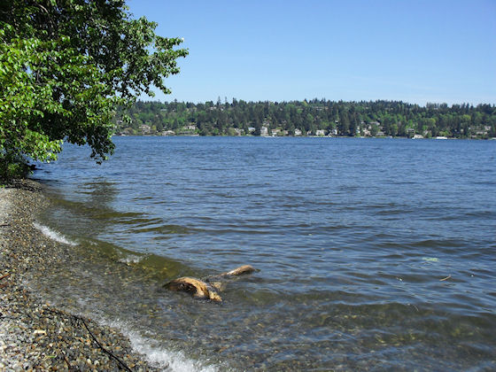 Seward Park at the south end of the lake features a perimeter path for bicycles and pedestrians that follows the waterfront with sweeping views of the lake, as well as several swimming spots and kayak launches.