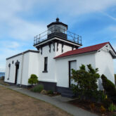 The oldest of the Puget Sound lighthouses, Point No Point Light Station is located on the northern tip of the Kitsap Peninsula near the town of Hansville. Until 2006, when the historic Fresnel lens was replaced with an automated one by the US Coast Guard, the lighthouse had been in continuous operation and providing navigational aid since 1879.